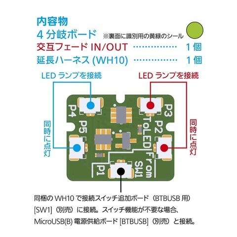 内容物:4分岐ボード 交互フェードIN/OUT・・・1個/延長ハーネス(WH10)・・・1個