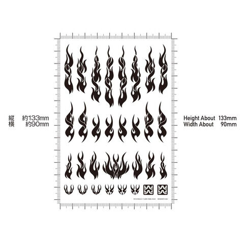 このデカールは、伝統的なファイア柄とトライバルデザインを織り交ぜた新世代のデザインで、塗装では難しい複雑な流線形模様を、水転写式デカールでドレスアップできます。