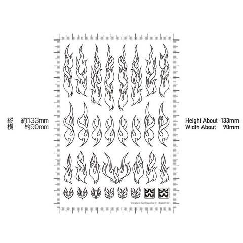 このデカールは、伝統的なファイア柄とトライバルデザインを織り交ぜた新世代のデザインで、塗装では難しい複雑な流線形模様を、水転写式デカールでドレスアップできます。