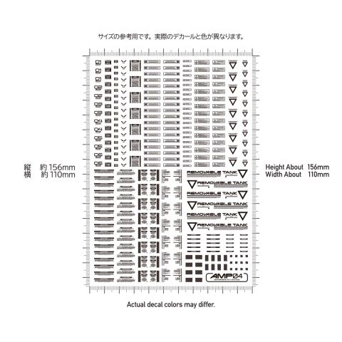 メカモデル向けの水転写式汎用コーションデカール「AMP」は、近年の細分化されたメカモデルのパーツ割に対応するため、デザインを刷新した新シリーズです。