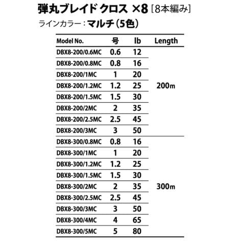 メジャークラフト 弾丸ブレイド クロス 200m(0.8号/16lb) マルチカラー MajorCraft PEライン DBX8-200/0.8MC 【返品種別B】