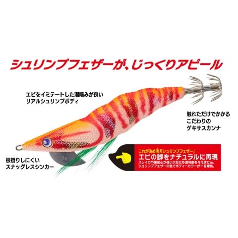 ◆お腹のシュリンプフェザーがエビの脚を再現し、リアルなエビ型ボディが水を押すことでイカに存在を知らせます。