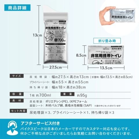 - セット内容:尿処理袋×3、プライバシーシート×1、持ち帰り袋×3