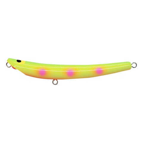 控えめながら甘い連続POP音を発し、泡を纏うように、艶かしく水面に軌跡を描き出すトップウォータープラグへと変身します。