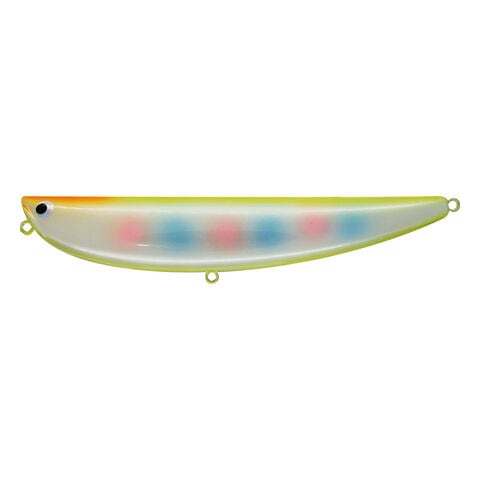 ペンシルベイトらしいロッドワークによる緩急はモチロン、リトリーブのみでも左右に蛇行するウェイキングアクションも可能となっています。