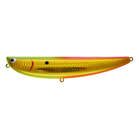 ペンシルベイトらしいロッドワークによる緩急はモチロン、リトリーブのみでも左右に蛇行するウェイキングアクションも可能となっています。