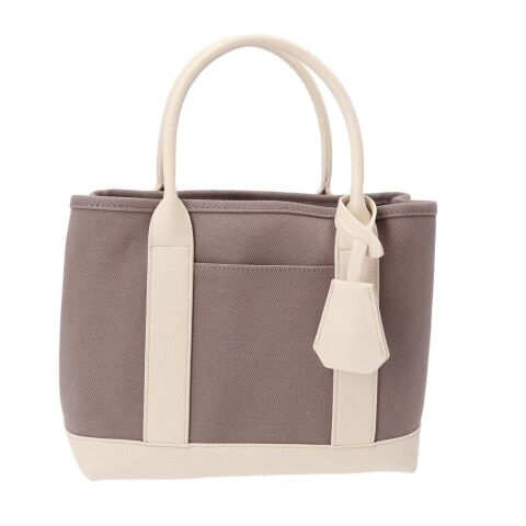 オールシーズン使える、ナチュラルなキャンバス生地を使用。ハンドルや底面などにフェイクレザー素材をプラスし、デザインのアクセントに!