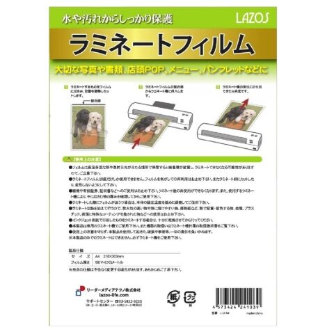 Lazos(ラソス) ラミネートフィルム A4サイズ(100枚入り) L-LFA4 【返品種別A】