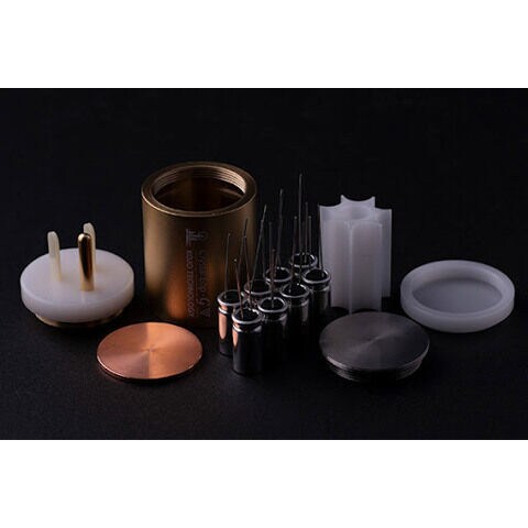 導電性を必要とする内部キャップや胴体、封止キャップの金属素材は、繰り返し行われた音質的バランス調整の結果、異金属(銅、真鍮、SUS)にて構成しています。
