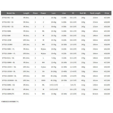 シーバス、青物、ショアスロー、餌木、ヒラメ。ターゲットやタクティクスごとにカテゴライズされたショアキャスティングロッドシリーズとして、