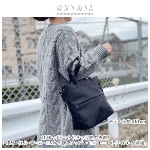 10個のポケット付きで収納力抜群! L.R.M(エル・アール・エム)の隠しジップナイロントート(Sサイズ)が登場。