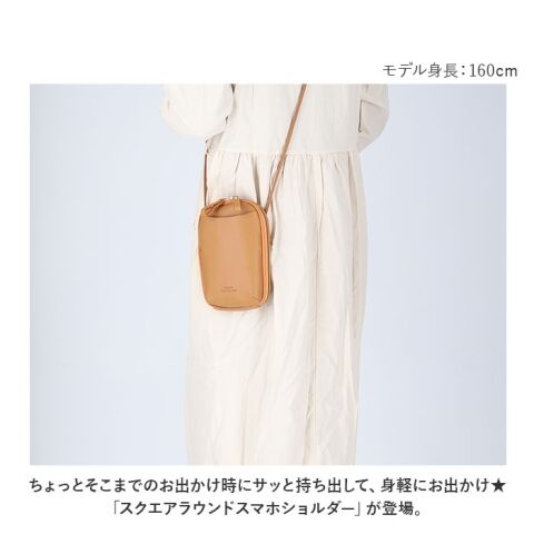 ◆ちょっとそこまでのお出かけ時にサッと持ち出して、身軽にお出かけ! 「縦型スクエアラウンドスマホショルダー」が登場。