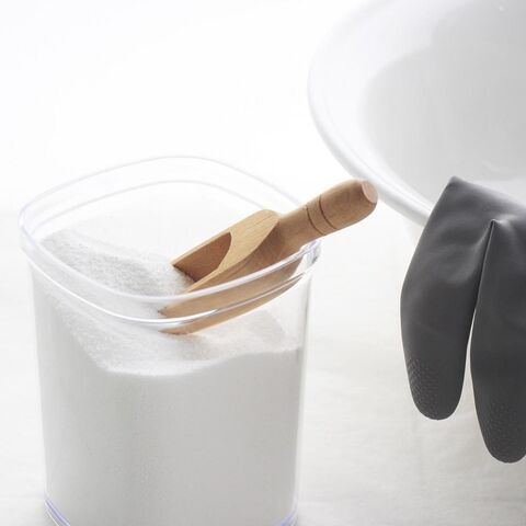 炭酸塩の一種で、炭酸ナトリウムとも呼ばれます。使い方はセスキ炭酸ソーダとほぼ同じですが、アルカリ性が強いので使用量は約半分でOK。経済的なアルカリ剤です。