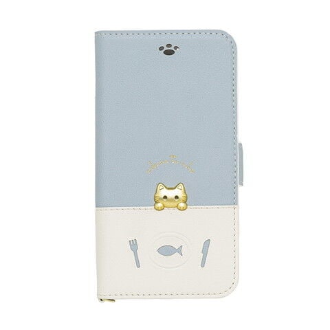 NATURALdesign iPhone SE(第3/2世代)/8/7/6s/6用 手帳型ケース カードポケット付 SAKANA TO NEKO Bタイプ(ブルー) IP7-DISH01 【返品種別A】