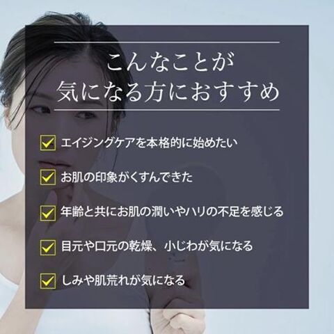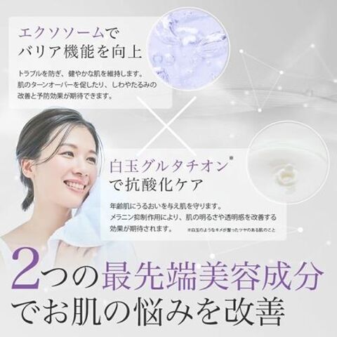 ■成分 :水、グリセリン、イソペンチルジオール、ソルビトール、BG、マンニトール、水溶性コラーゲン、ヒト遺伝子組換オリゴペプチド-1、水添レシチン、リン酸Na、カプリリルグリコール、12-ヘキサンジオール、ヒト遺伝子組換ポリペプチド-11、ヒトサイタイ血幹細胞順化培養液、ヒト幹細胞順化培養液、トリ(カプリル酸/カプリン酸)グリセリル、ポリソルベート80、ヒアルロン酸アスコルビルプロピル、酢酸トコフェロール、カプリロイルジペプチド-17、フィトステロールズ、セラミドEOP、セラミドNG、セラミドNP、セラミドAG、セラミドAP、ニコチンアミドモノヌクレオチド、レシチン、ヒト臍帯血細胞順化培養液、ヒトサイタイ血由来幹細胞エクソソーム、コレステロール、トコフェロール、アルブチン、アマニ脂肪酸、パルミチン酸アスコルビル 、グルタチオン、キサンタンガム、クエン酸、クエン酸Na、メチルパラベン、フェノキシエタノール