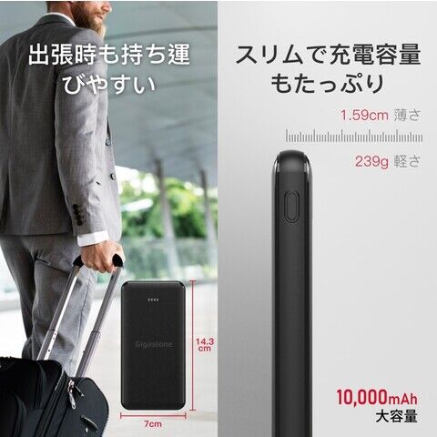 ◆10000mAhモバイルバッテリー/USB-C入力2台同時充電、安全設計&回路保護、コンパクト&軽量、iPhone/Android対応、旅行/出張/アウトドア向け、安心の1年間メーカー保証付き