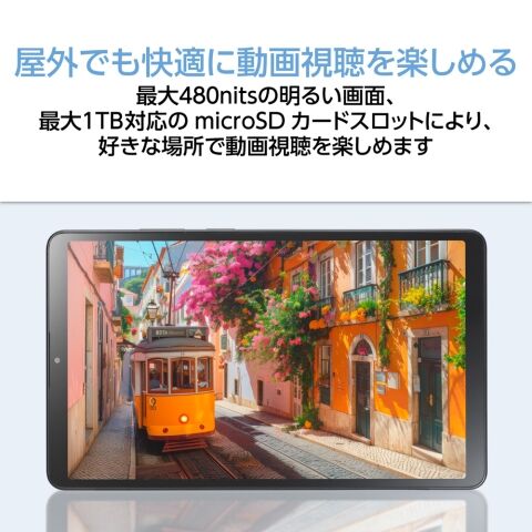 最大480nitsの明るい画面、 最大1TB対応のmicroSD カードスロットにより、 好きな場所で動画視聴を楽しめます