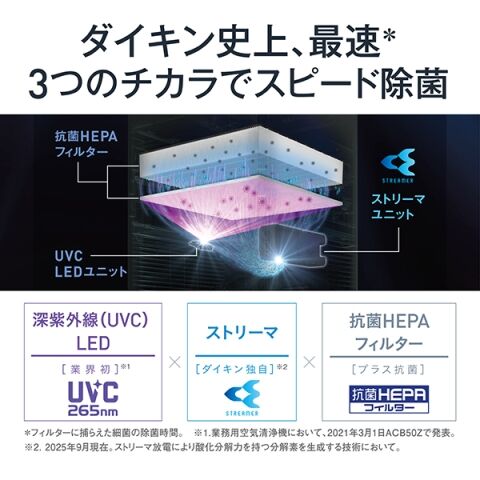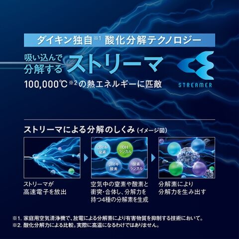 酸化分解力に優れた、ダイキン独自のストリーマ方式。