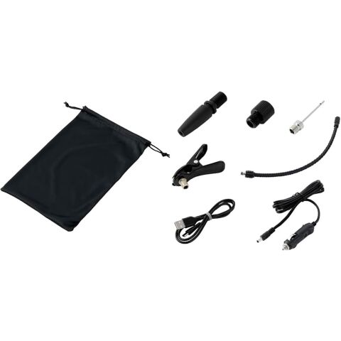 - 付属ノズル:充電用コード(Type A→Type C)、米式エアーホース(車、バイクなど)、ボール用アタッチメント、英式アタッチメント(一般的な自転車用)、仏式アタッチメント(MTBなど高速自転車用)