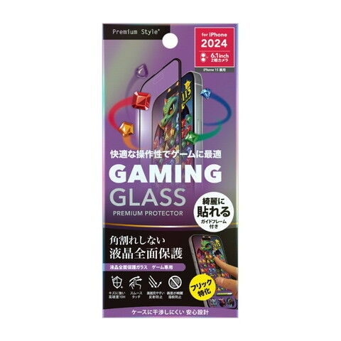 PGA iPhone 16用 液晶全面保護ガラスフィルム 角割れ防止PETフレーム ゲーム特化 指紋・反射防止 PG-24AGLF07GM 【返品種別A】