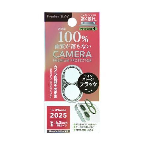 PGA iPhone 17/16/16Plus用 カメラレンズフレーム(ラインストーン/ブラック) PG-25ALGD06BK 【返品種別A】