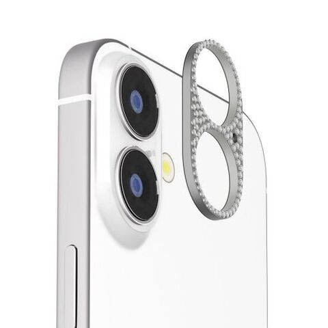◆カメラレンズ周りをキズから守るiPhone17/16/16plus用カメラレンズフレーム ラインストーン/シルバーです。