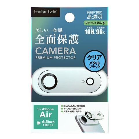 ◆色鮮やかなカメラレンズのフチが特徴的なiPhone Air用カメラフルプロテクター クリア/メタルブラックです。