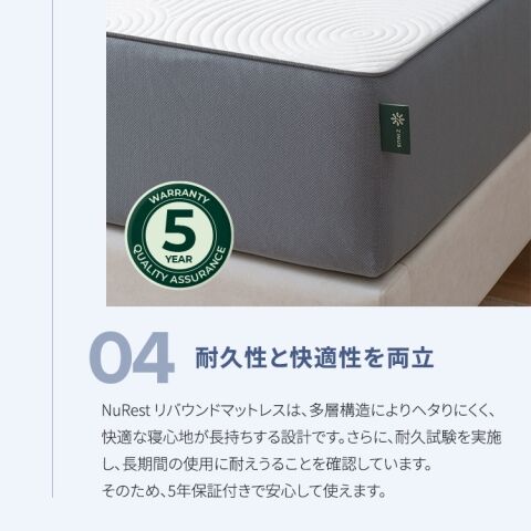 NuRestリバウンドマットレスは、4層構造のこだわりで快適な睡眠をお届けします。