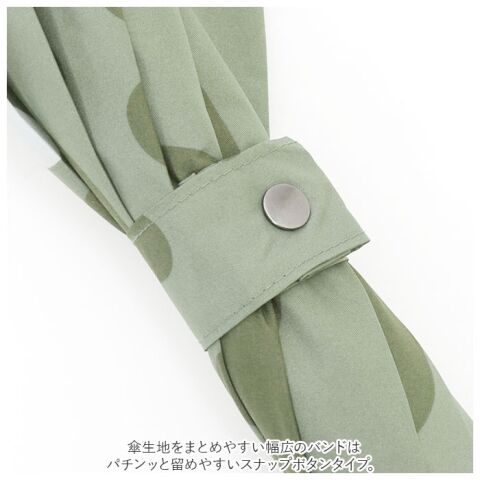 ◆傘生地をまとめやすい幅広のバンドはパチンッと留めやすいスナップボタンタイプ。
