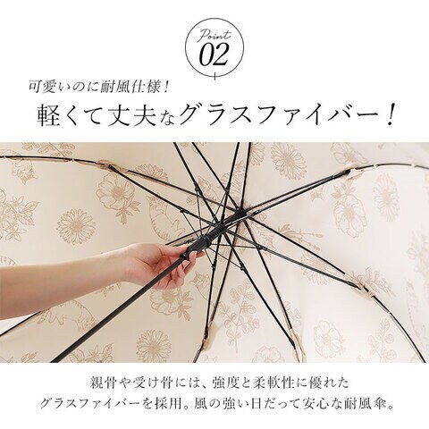 軽量でしなやかな素材なので、風の強い日だって安心な耐風傘。