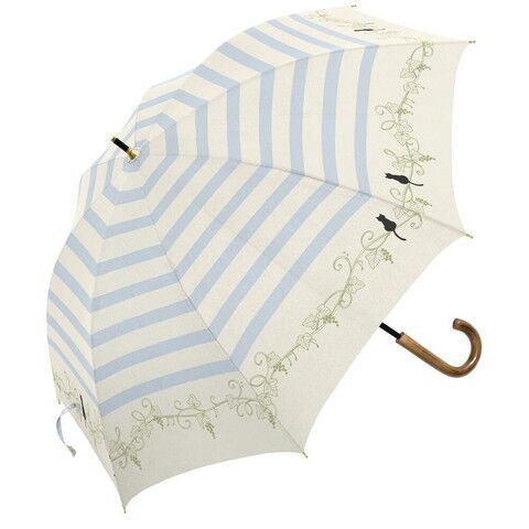 MKN(エムケーエム) 晴雨兼用 長傘 50cm ブラックコーティング テキスタイル(ボーダーと猫と音符/オフホワイト) BLACK50NAGA-1A-2H 【返品種別A】