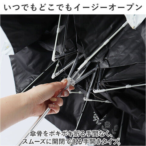 傘骨をポキポキ折る手間なく、スムーズに開閉できる手開きタイプ。
