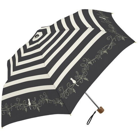 MKN(エムケーエム) 晴雨兼用 折りたたみ傘 50cm ブラックコーティング テキスタイル(ボーダーと猫と音符/ブラック) BLACK50ORI-1A-2G 【返品種別A】