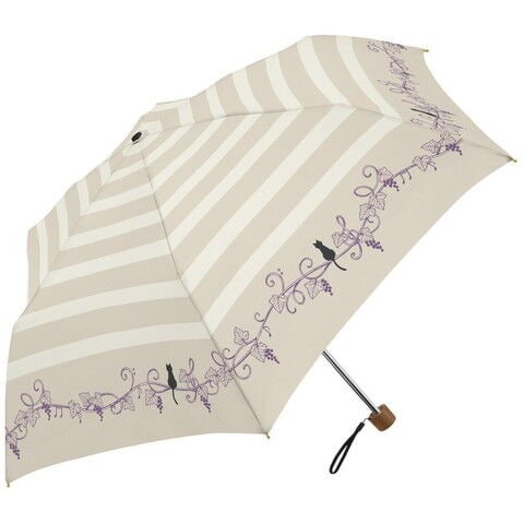 ※こちらの販売ページは折りたたみ傘50cm、ボーダーと猫と音符/ベージュです。