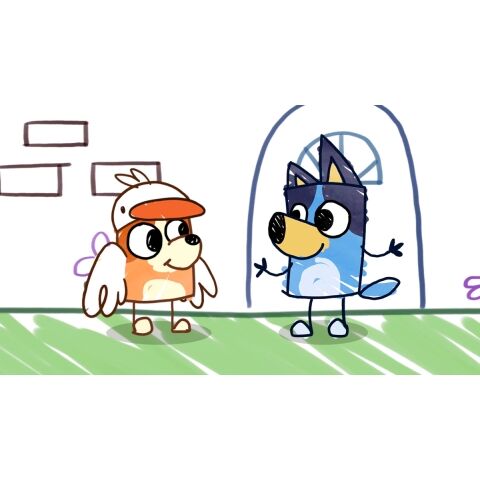 表情豊かなカットシーンが、ブルーイの世界と冒険をいきいきと描き出します。