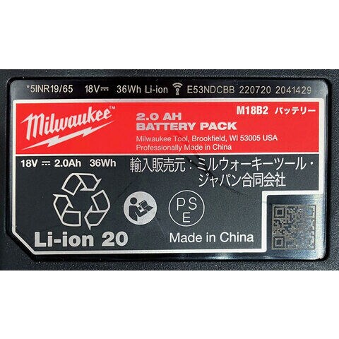 ミルウォーキー M18 2.0Ah バッテリー Milwaukee REDLITHIUM-ION 18V 2Ah M18 B2 JP 【返品種別B】