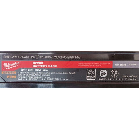 ミルウォーキー MX FUEL 3.0Ah バッテリー Milwaukee MX FUEL REDLITHIUM CP203 BATTERY PACK リチウムイオン電池 MXF CP203 JP 【返品種別B】