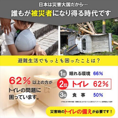汚物をしっかり吸収する凝固剤付きで突然の自然災害があっても安心です。