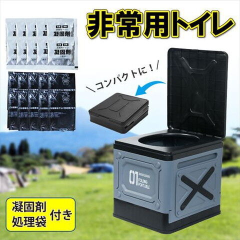 クロスロード 非常用トイレ コンパクト 折り畳み式コンテナタイプの便座 簡易トイレ 10回分(凝固剤10個+処理袋10枚付)(グレー) CROSSROAD CRKT-GY 【返品種別A】