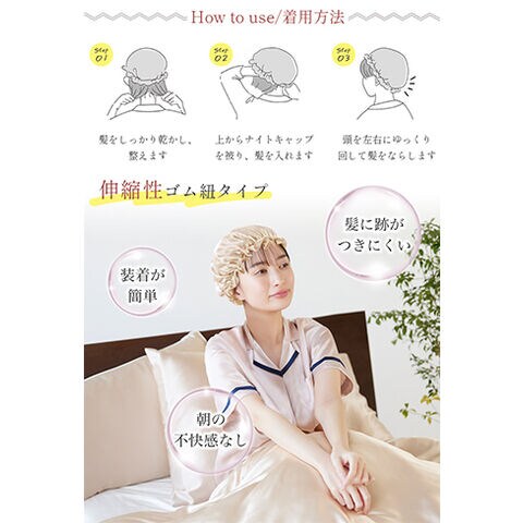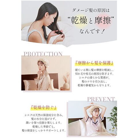 ◆髪の広がりや摩擦を防ぎ、ツヤ髪をキープするシルク100%のナイトキャップ