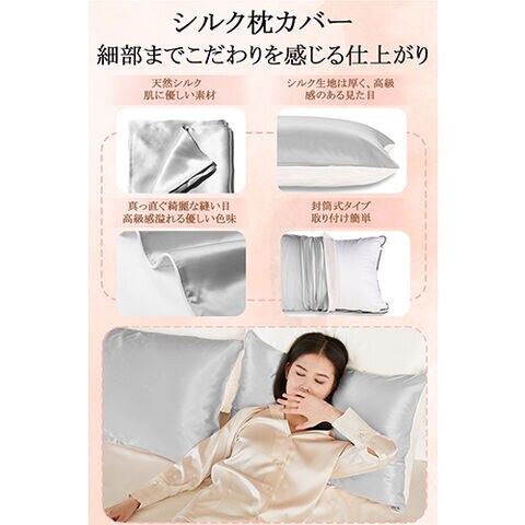 シルクは、髪の毛に優しい天然素材で、摩擦を最小限に抑え、寝ている間のダメージを防ぎます。