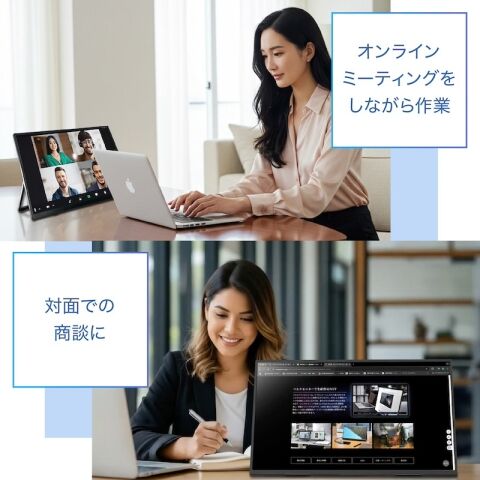 PC画面の拡張はもちろん、スマホやタブレットの画面をミラーリングして、プレゼンや動画鑑賞もよりスマートに楽しめます。