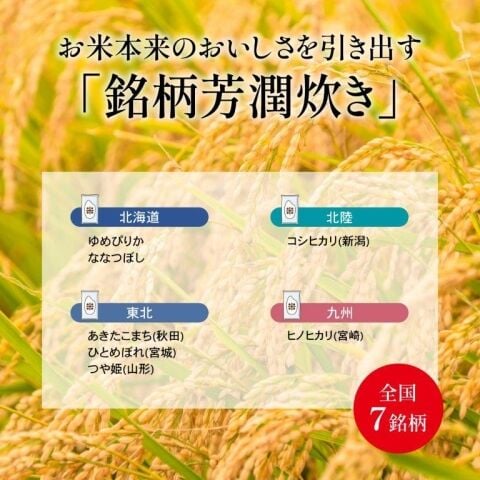 ゆめぴりか、つや姫、はえぬき、キヌヒカリ、きぬむすめ)の個性を引き出す専用モードで、おいしく炊き上げます。
