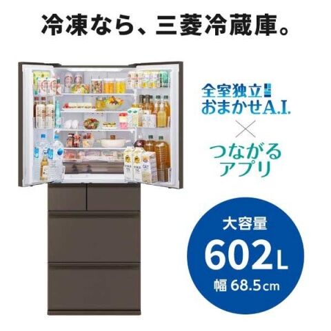 【設置無料 Aエリア】三菱 602L 6ドア冷蔵庫(グランドアンバーグレー) MITSUBISHI MR-MZ60N-H 【返品種別A】