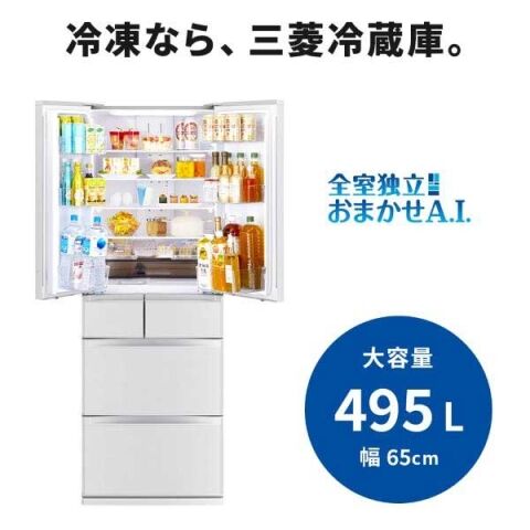 【設置無料 Aエリア】三菱 495L 6ドア冷蔵庫(シルクウッド) MITSUBISHI MR-JW50N-W 【返品種別A】