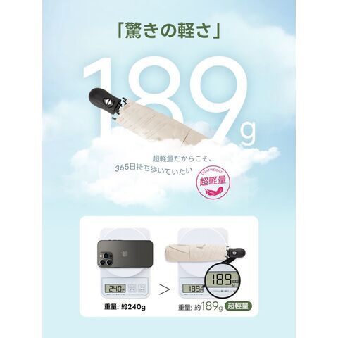★重さ189g! 驚きの軽さ&自動開閉付き折りたたみ日傘!