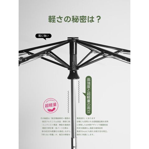 - 素材傘フレーム:アルミ合金、ポリエステル