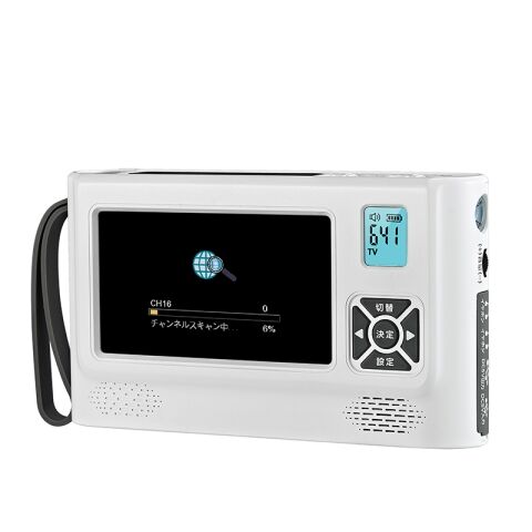 ワンセグテレビ、FMラジオ(ワイドFM対応)、AMラジオ、LEDライト、SOSサイレン、携帯充電、録画機能を搭載!