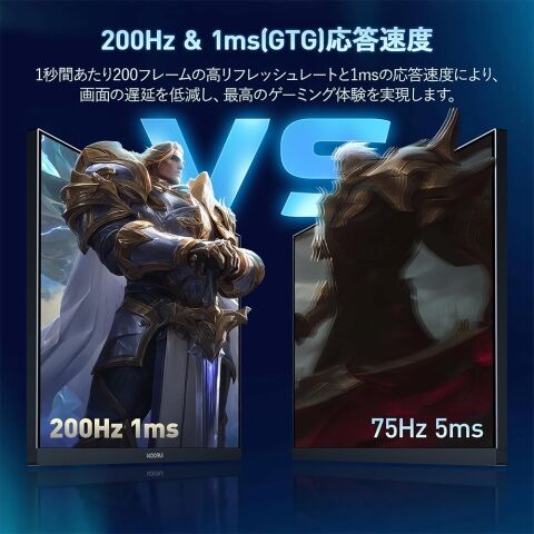200Hzの高リフレッシュレートと1ms(GTG)応答速度により、動きの速いシーンでも残像を抑え、滑らかな映像表示を実現。