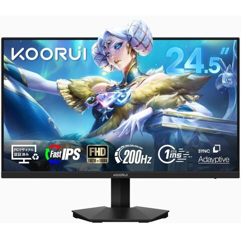 KOORUI|クールイ ゲーミング液晶ディスプレイ(24.5型/Fast IPS/FullHD 1920×1080/200Hz/1ms/HDR400/HDMI2.0/DP1.4/VESA)(ブラック) G2511P 【返品種別A】